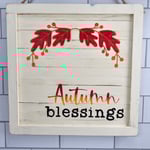 Autumn Blessings 9" wooden sign. embossing and hang tie with decorative beads. Made from upcycled wood. Handcrafted in Maine.