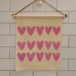 Hearts Galore. Handcrafted from upcycled wood, organic cotton and mixed media. Each sign is a one of a kind creation. Approximately 9x4 inches. Made in Maine with love.